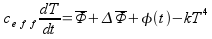 The Energy required as the necessary input by industries and civil uses is totally absorberd by earth's surface and consequently degraded as thermal energy (Davis 1990) in a time scale which is short compared with the short term solar variability. So, for vanishing value of the earth thermal capacity, an increase of the temperature at the earth's surface is expected Wilson and Jones (1990). If we consider the earth's surface as a body of given thermal heat capacity ceff, a simple equation for energy conservation is written: (Ehrlich et al. 1970)