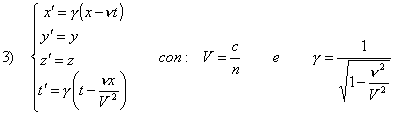 luce? O poi diventa, nel mezzo, velocità di gruppo?4 Ma le trasformazioni di Lorentz usate, per tali problemi sono le 8),